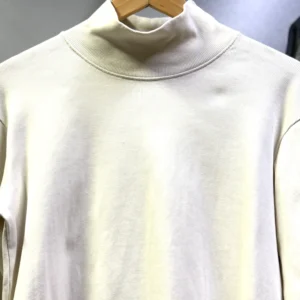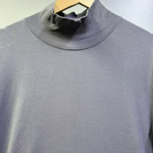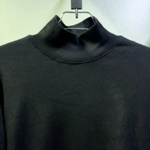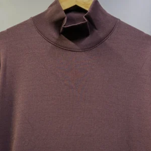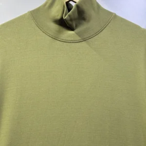 • Design Details: Elevated high-neck profile with rib-finished body and hem