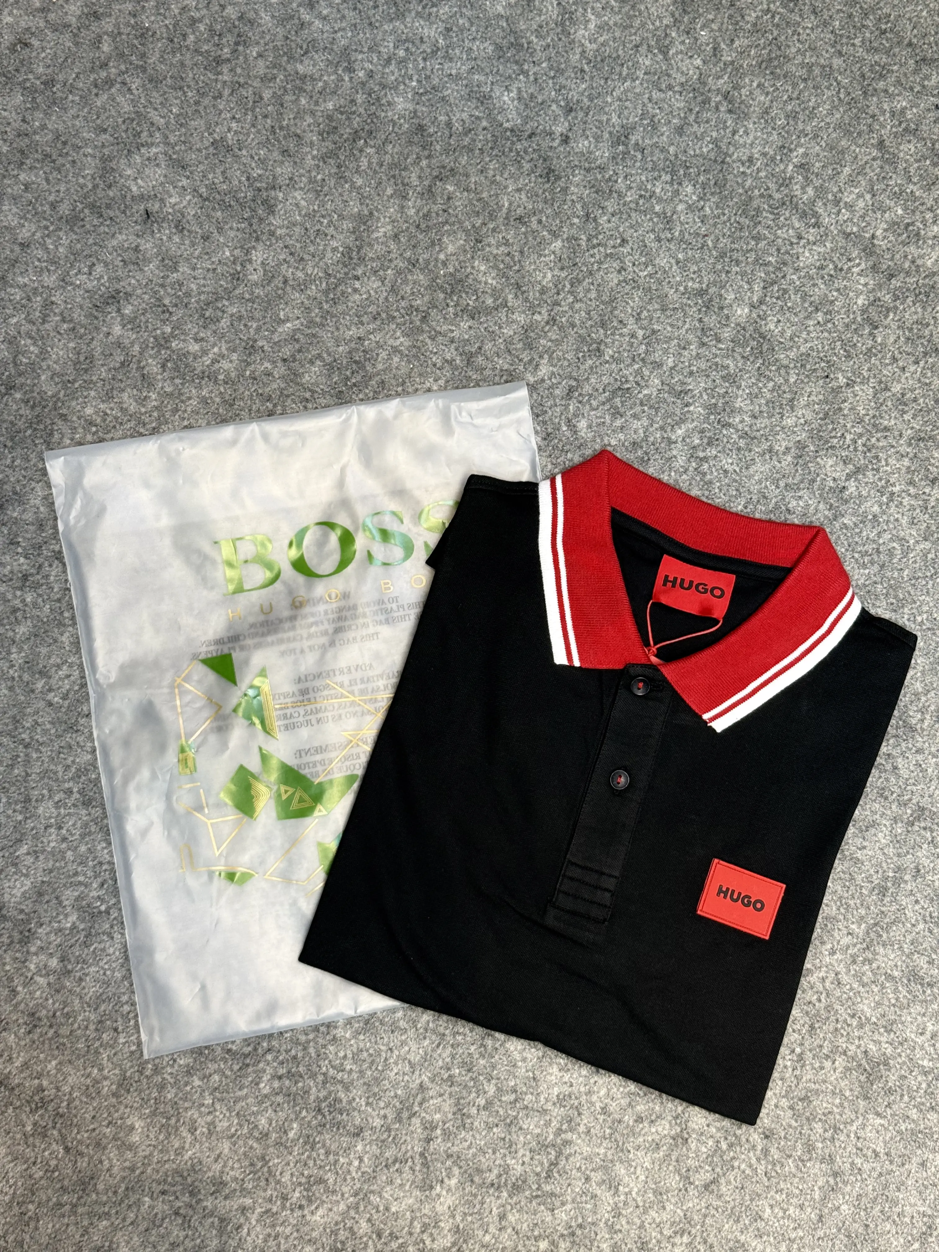 HUGO Signature Cotton Piqué Polo – Original Export Quality (Black)