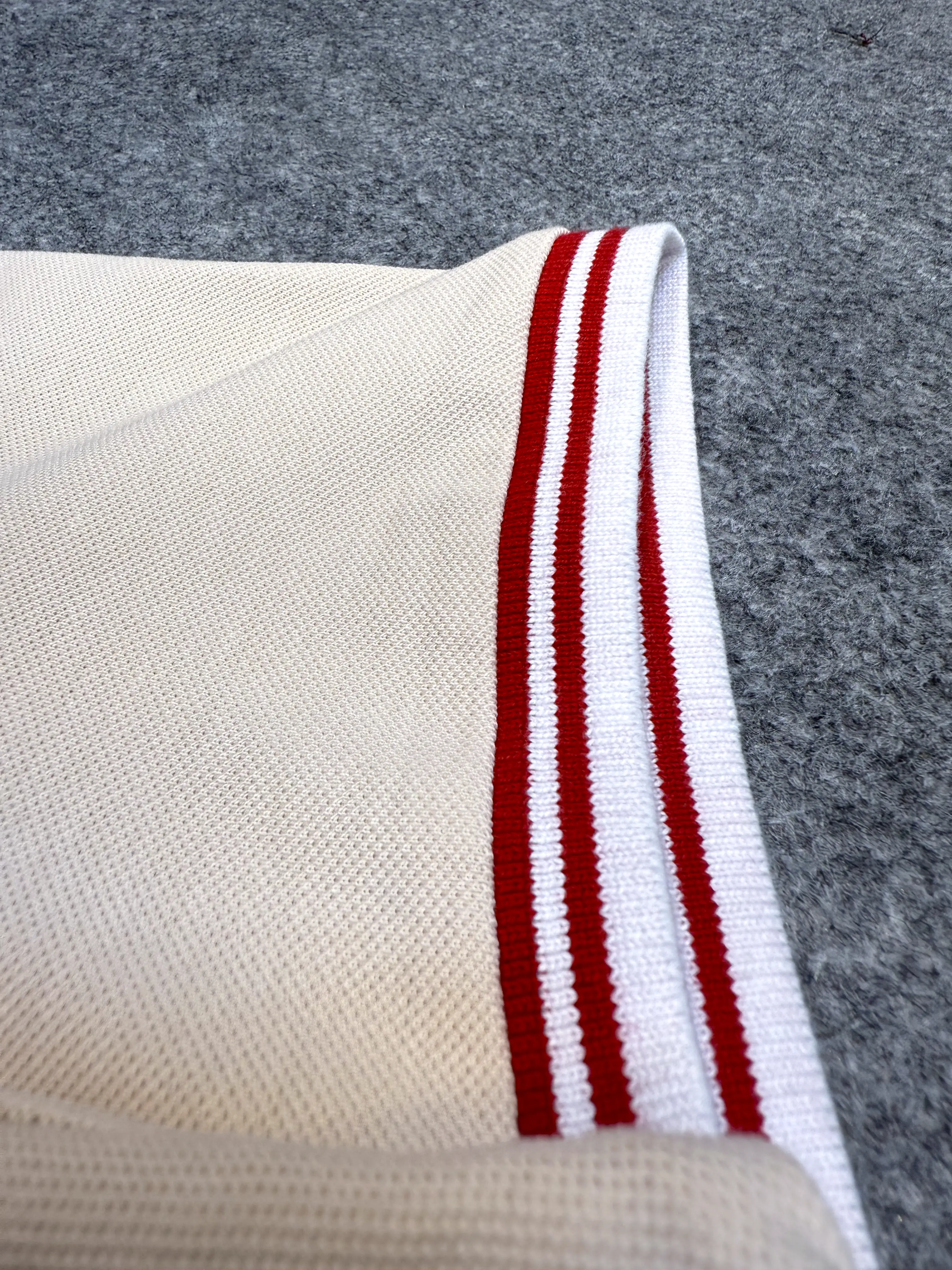 ●Contrasting Red and White Ribbed Collar & Cuffs – adds a bold, athletic edge