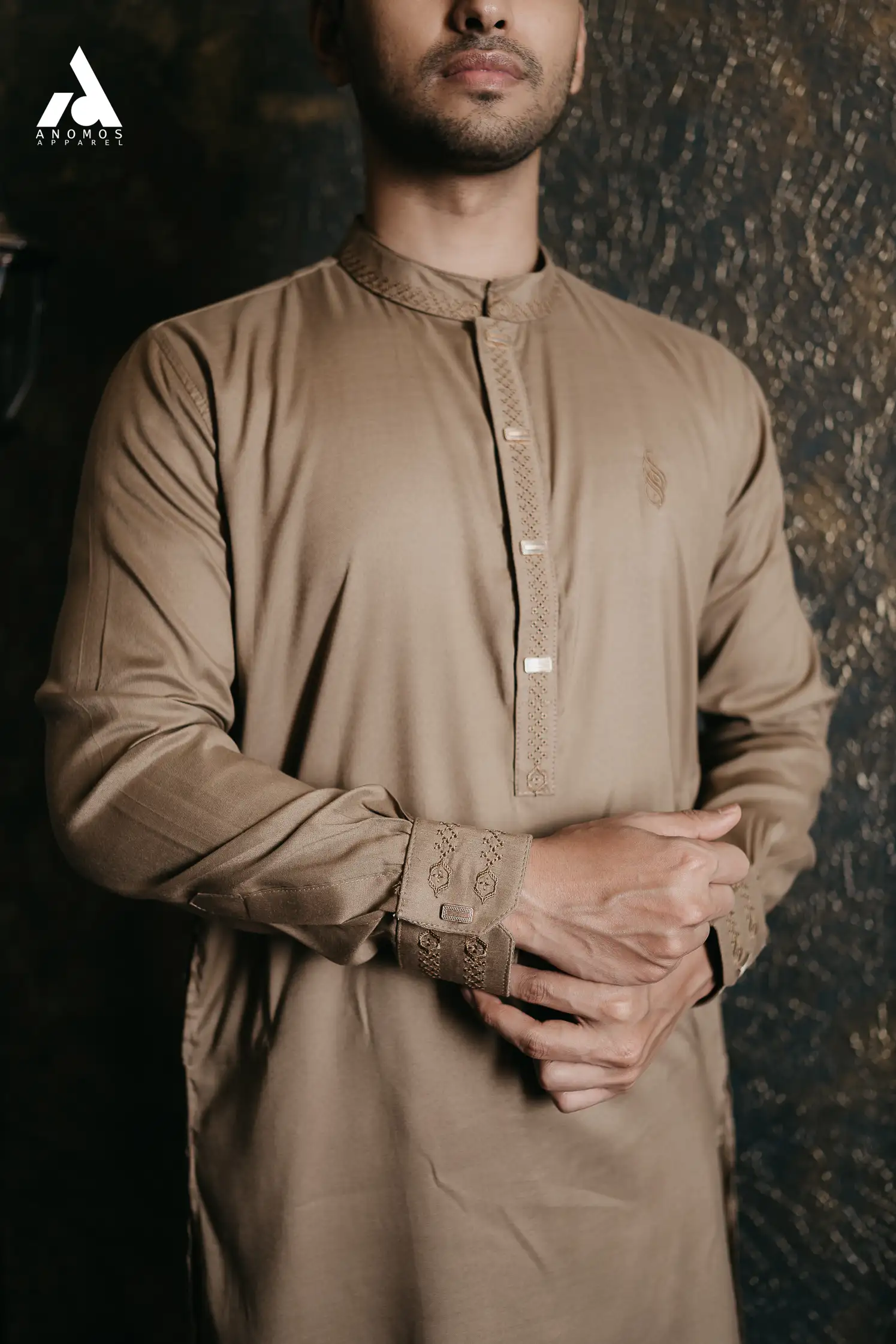 Premium Embroidery Panjabi – Light Biscuit (C222)