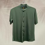 Premium Half Sleeve Band Collar China Fabric Shirt – Olive